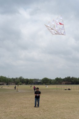 Each narrative was gathered via an online submission form and printed on a kite sail. Next, local participants gathered for a workshop at Artpace to build the kites. Most made a kite with their own story, others assembled one of the out-of-state or international submissions. Final assembly and installation was completed by Cade Bradshaw and Stuart Allen of Bridge Projects.